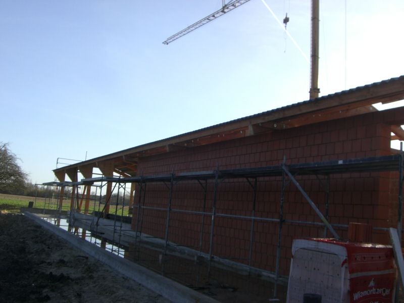 Dacheindeckung mit Faserzementwellplatten und Lichtelementen am First