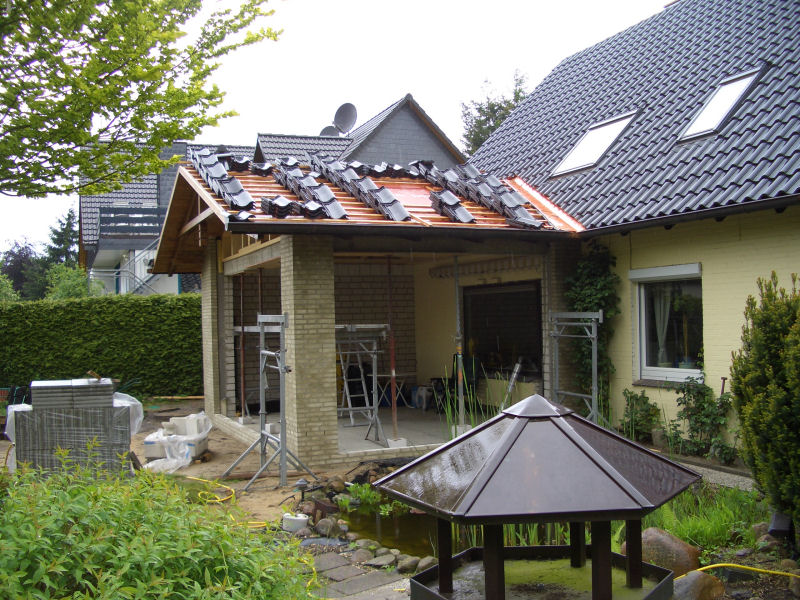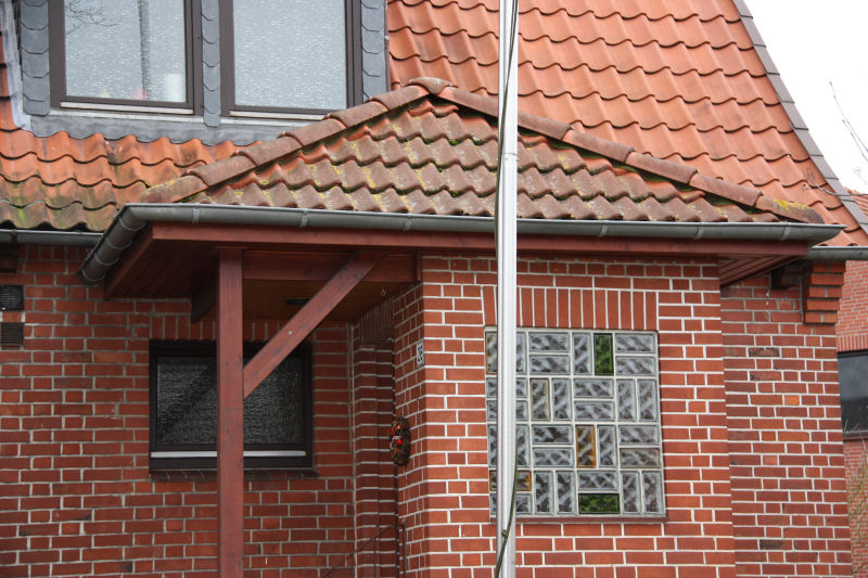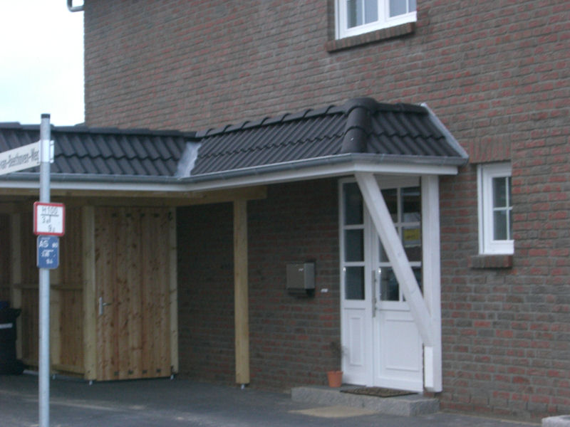 Haustürüberdachung mit Betondachsteinen eingedeckt