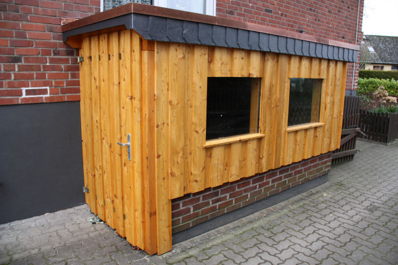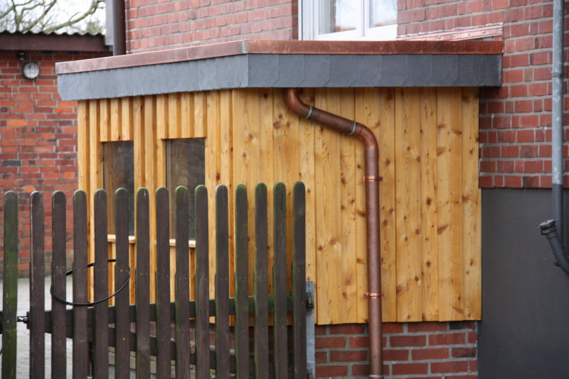 Vordach Kellereingang mit Deckelschalung ,Schieferblende und Kupferabdeckung