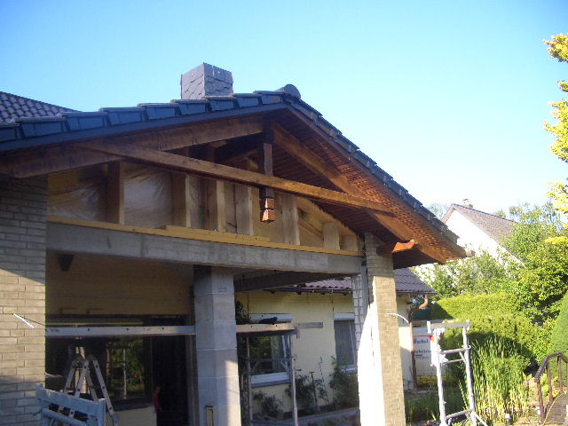 Haustürüberdachung mit Attika überlaufend ins Carport